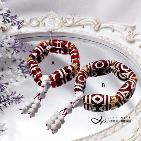 B 款 – 天珠上的眼紋為「天圓地方」,象徵天人合一,諸事順心吉祥。