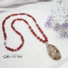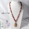 1.圖上水墨風瑪瑙滾石高約55mm、寬33mm、厚22mm,鍊身紅玉瓍珠約6.2-10.2mm,項鍊總長度(不含滾石墜)約75cm。