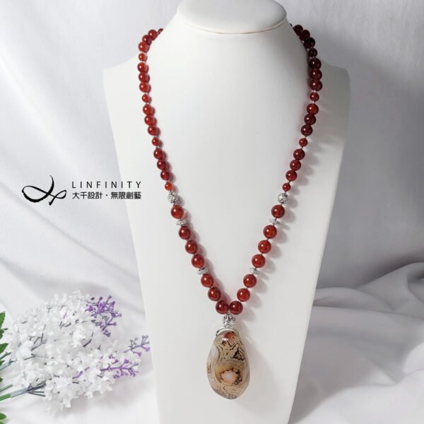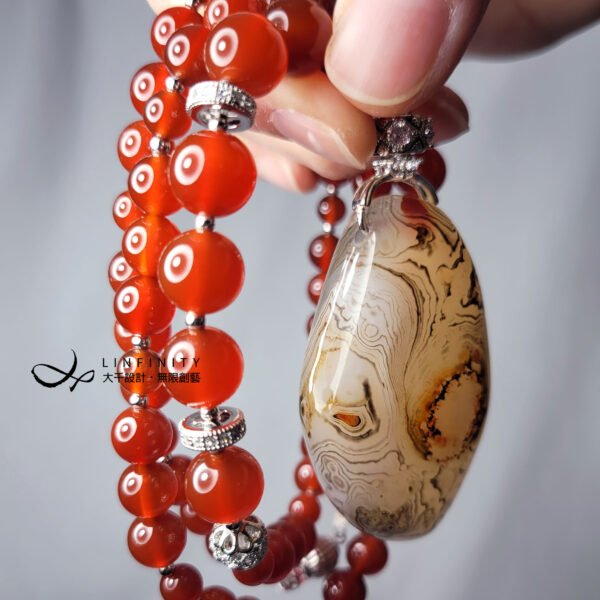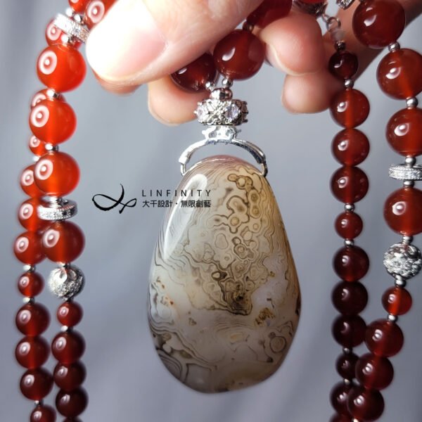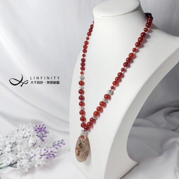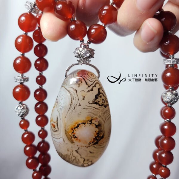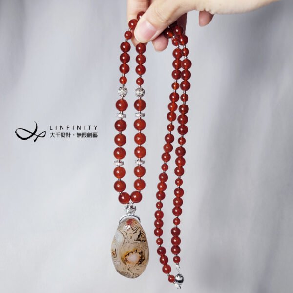 嚴選富貴祥瑞的紅瑪瑙(玉瓍)編製大器鍊身,主飾水墨風大瑪瑙滾石墜(滾石頂上一抹紅,獨特趣味、珍貴稀有),匠心獨具,不僅紅運當頭寓意美,更是極具靈性、開智慧、招財開運之珍稀美物。