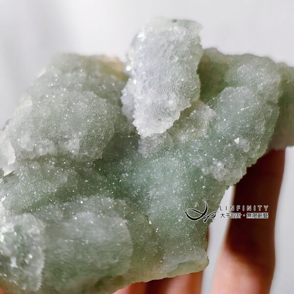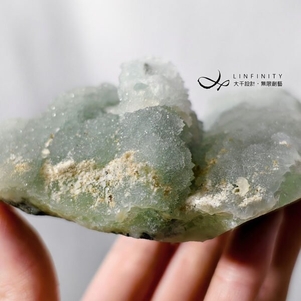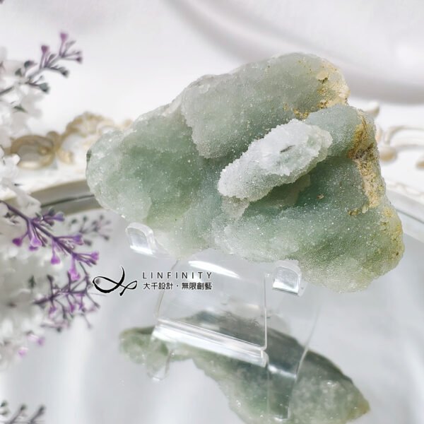 寶石洋溢著透心涼的薄荷綠色調,滿布細膩閃亮晶體,形似軟糖,可愛討喜,獨特美麗,值得收藏。