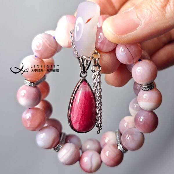 材質:天然瑪瑙(玉瓍)、玫瑰石(薔薇輝石)、18K金、925銀