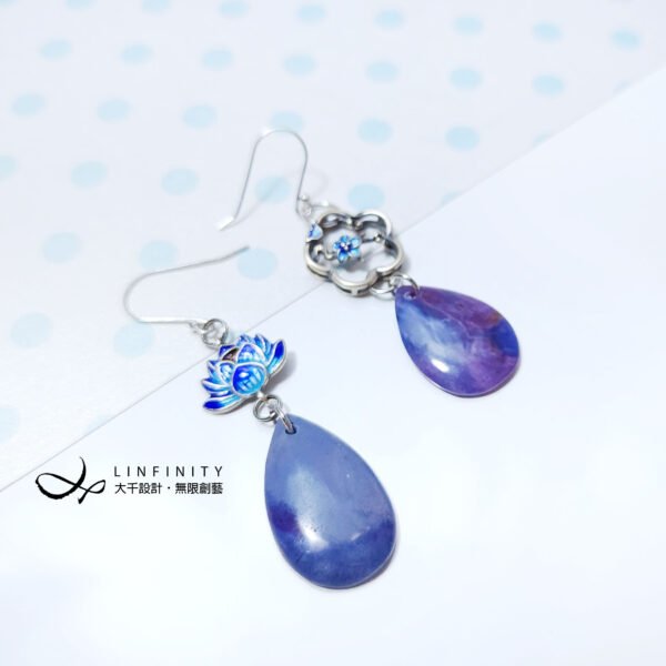 呼應舒俱來的紫羅蘭紫、皇家藍…等色彩紋理,精選蓮花(清淨智慧)、梅花(喜上梅梢)琺瑯飾與之相襯,不對稱設計優雅美麗,風情萬種。