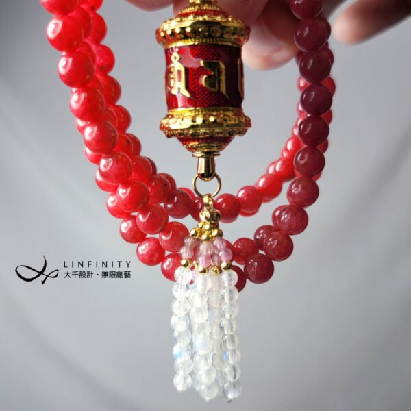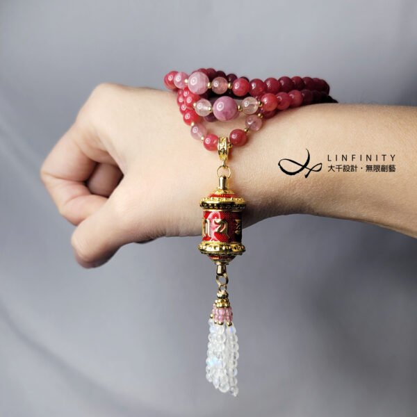 轉經輪軸承順滑度極高(轉動極順),佐頂級藍月光編流蘇,是為清淨祈願、吉祥富貴、別緻高雅、氣宇非凡之美物,亦是喜愛玫瑰石的藏友們值得收藏的臻品^^。