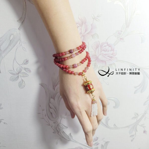 108手串確實源自佛家經典,也因其長度,得繞手腕好幾圈、或戴脖子當項鍊。但時至今日,108的材質、造型、裝飾用途等隨時代進步、改變,更為時尚、多層次、百搭,設計師也必須配合使用者喜好做調整,編製獨一無二的客製作品。