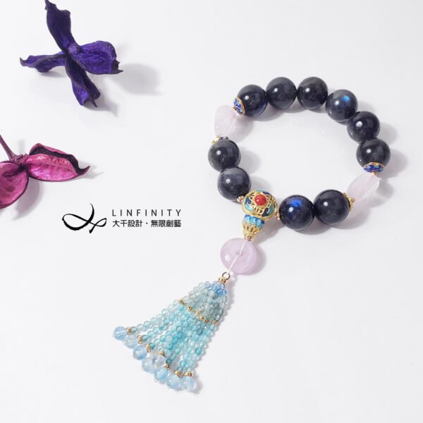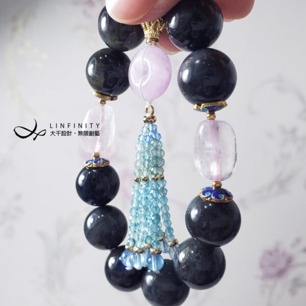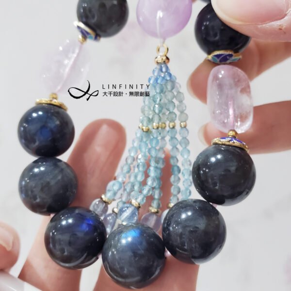 材質:天然藍暈黑拉長石、紫鋰輝、海藍寶、琺瑯、18K金、925銀
