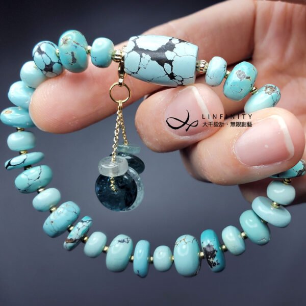 嚴選古董級寶石-藍松石(土耳其石),相佐同為古董級珍稀藍碧璽古錢串。