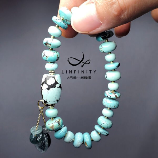 從外觀看,松石表面的黑色脈絡稱作「鐵線」,由松石中的鐵元素氧化而成,故每一條鐵線都是大自然獨一無二的贈禮。