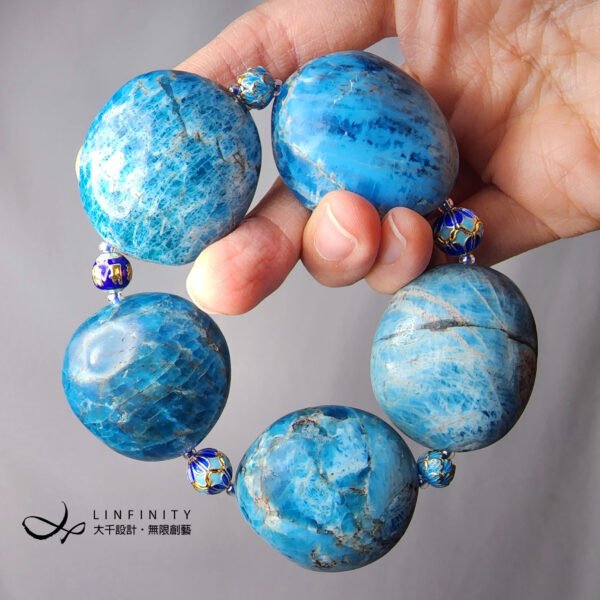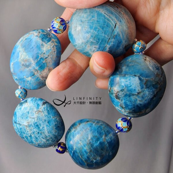 嚴選藍磷灰石大器滾石,相佐景泰藍(琺瑯)設計。