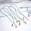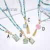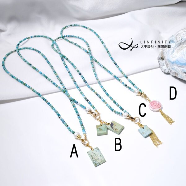 1.松石鑽面珠約3.5mm,A款無飾牌高約22mm,C款流蘇長約43mm,D款女皇貝直徑約18mm,繞3圈手圍約15.5cm,鍊身總長度約48cm。