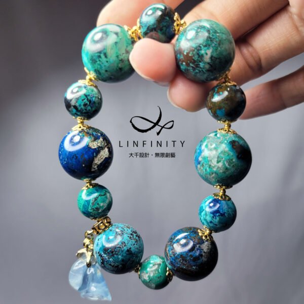 藍銅礦 孔雀石 松石 鳳凰石 星球 海藍寶 大寶石手鍊 單品 禮物