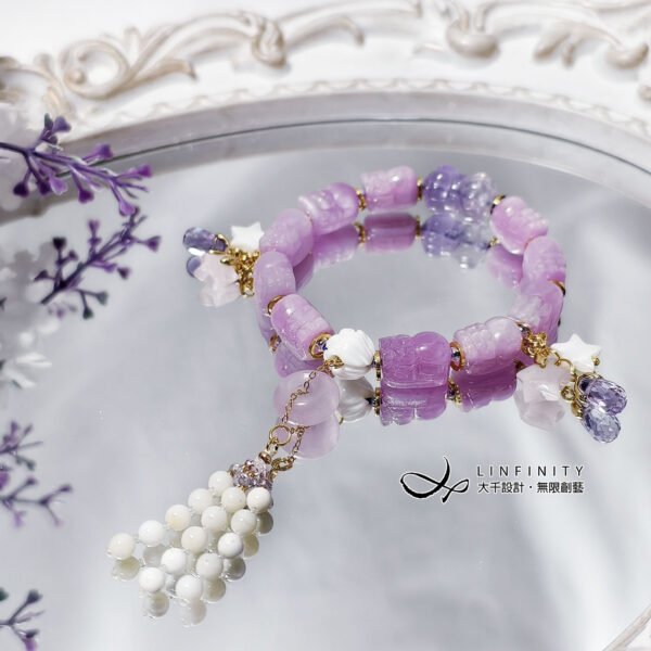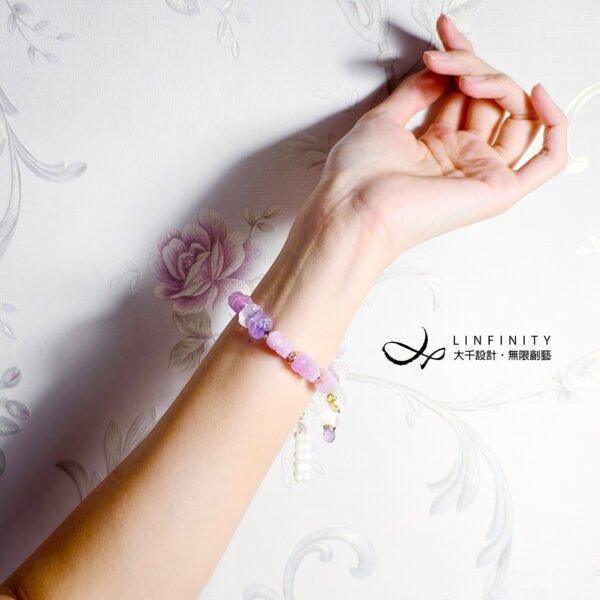 嚴選2種紫色系名貴寶石 – 紫鋰輝、紫水晶,佐來自海洋的靈性有機寶石 – 硨磲設計。