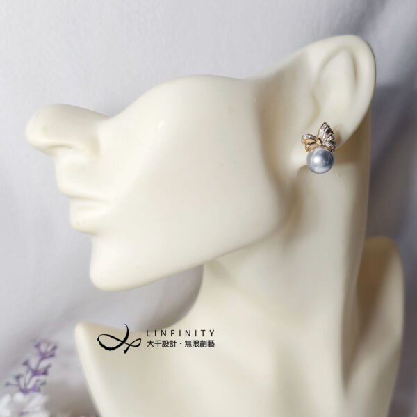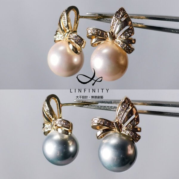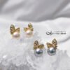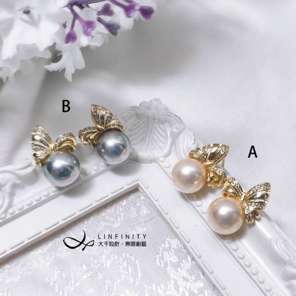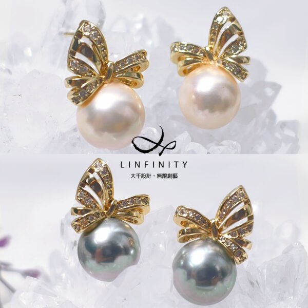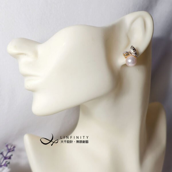 尺寸:貝珠約10mm,總高含帶鑽蝴蝶結耳針約1.9cm,不支援改夾式。
