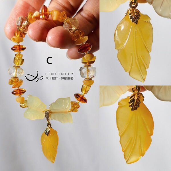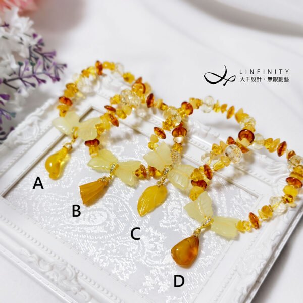 材質:天然琥珀(蜜蠟)、黃水晶、黃岫玉、925銀、18K金
