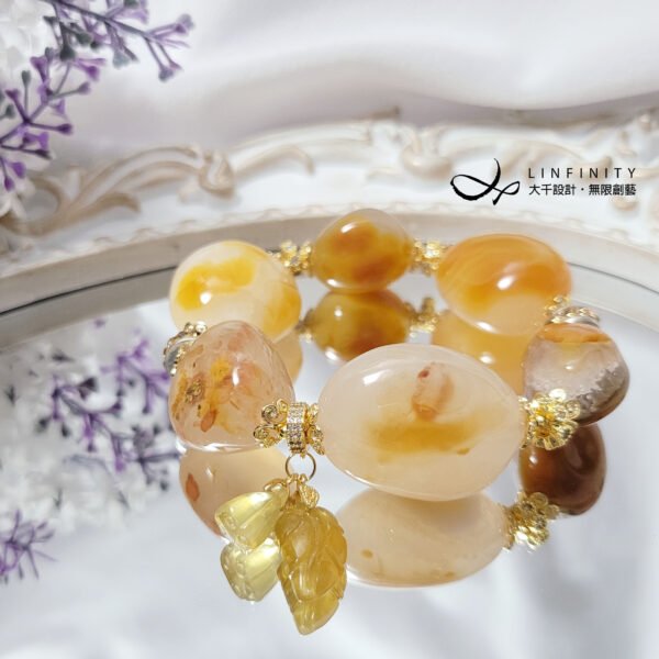 自古瑪瑙為富有靈性、象徵財富、智慧與美麗兼具的寶石,並金黃色系寶石皆屬財石。
