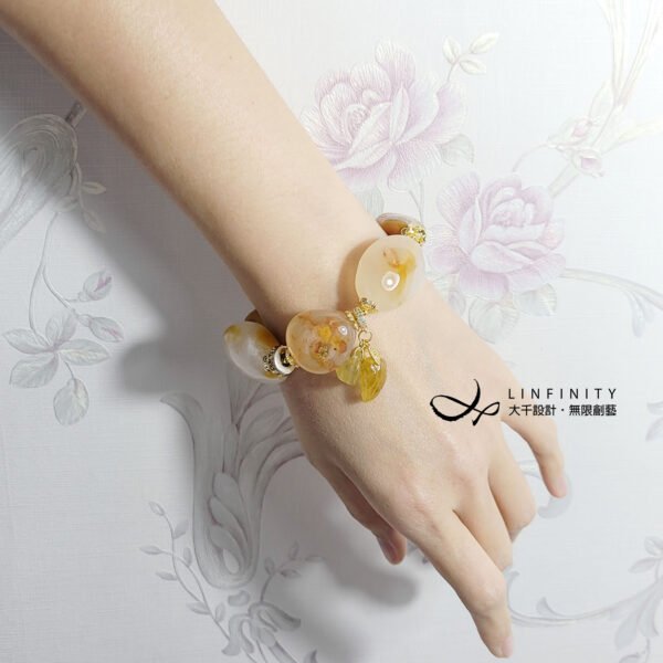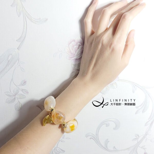 鍊身巧思以K金圈、黃鑽圈飾於金黃瑪瑙其間,能轉動、逸趣橫生,有轉運、招財之美意^^