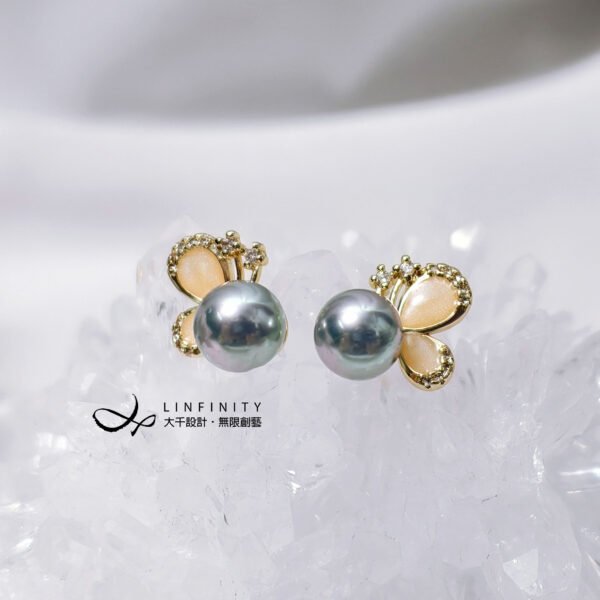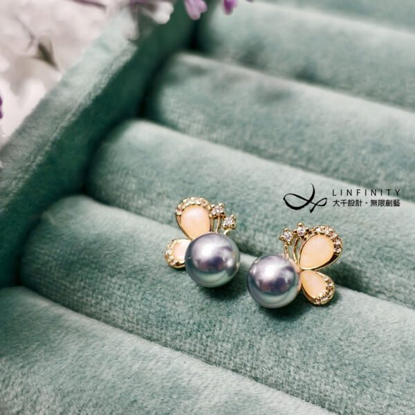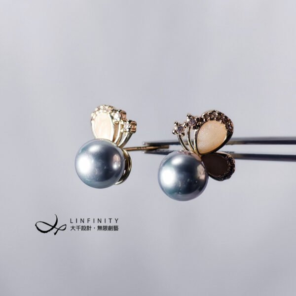 尺寸:貝珠約8mm,總高含帶鑽蝴蝶耳針約1.5cm,不支援改夾式。