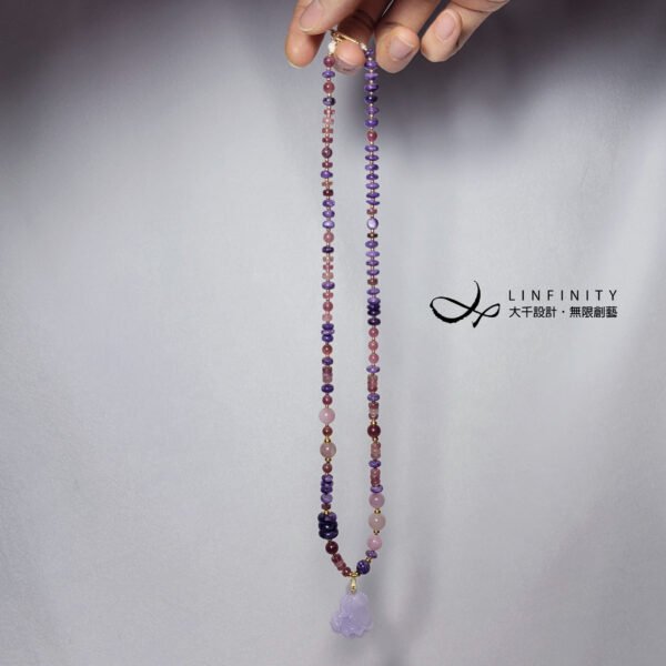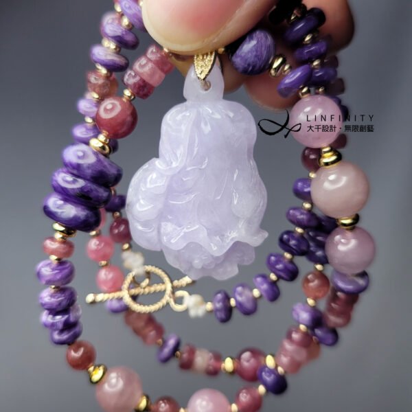 材質:天然翡翠(紫羅蘭)、紫龍晶、碧璽、18K金、925銀