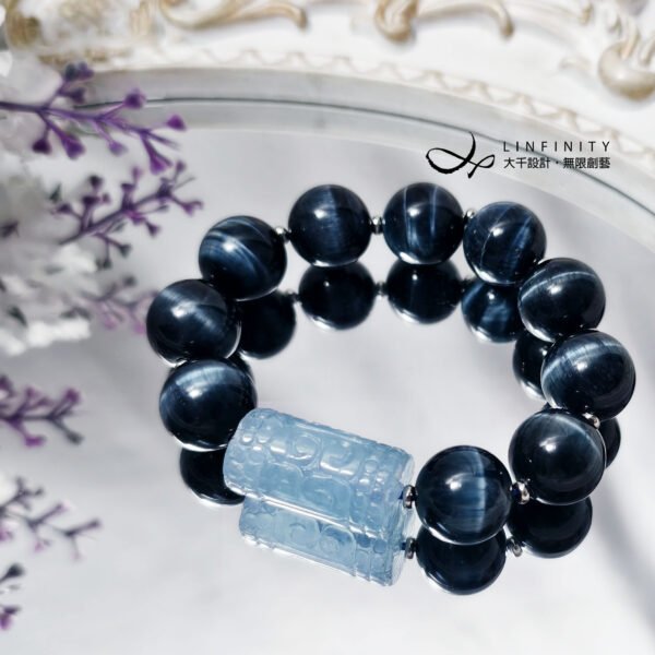 頂級一線藍虎眼 藍閃電 鷹眼 海藍寶 回紋 大寶石手鍊 單品 禮物