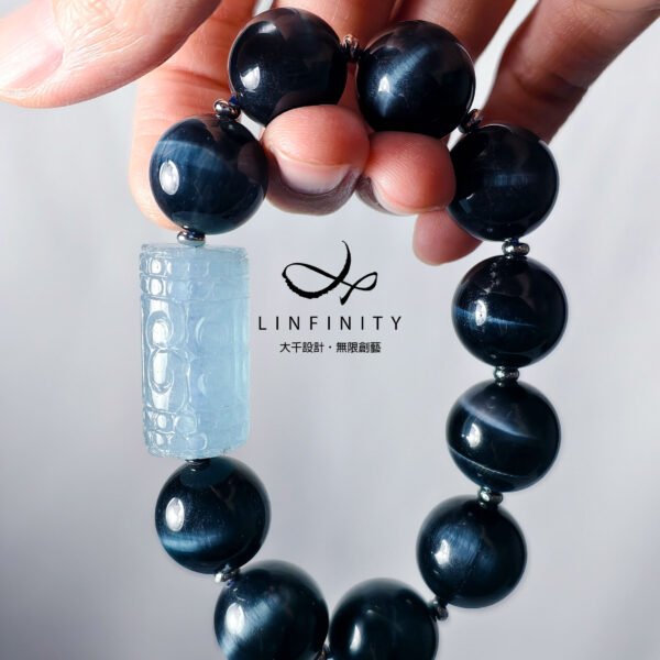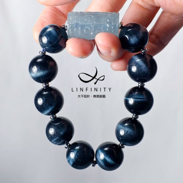 藍虎眼(16mm)體碩大器,藍眼線清晰明亮、完整,每一枚皆呈現稀有的一線,可謂萬中選一,深邃神秘、美麗獨具。