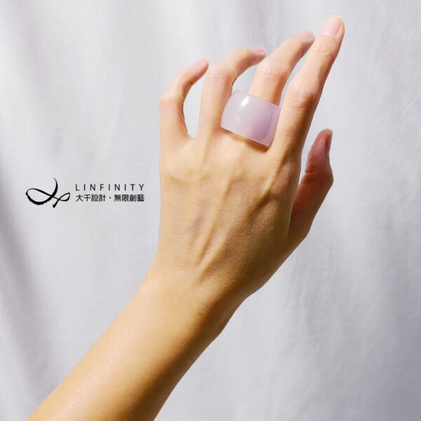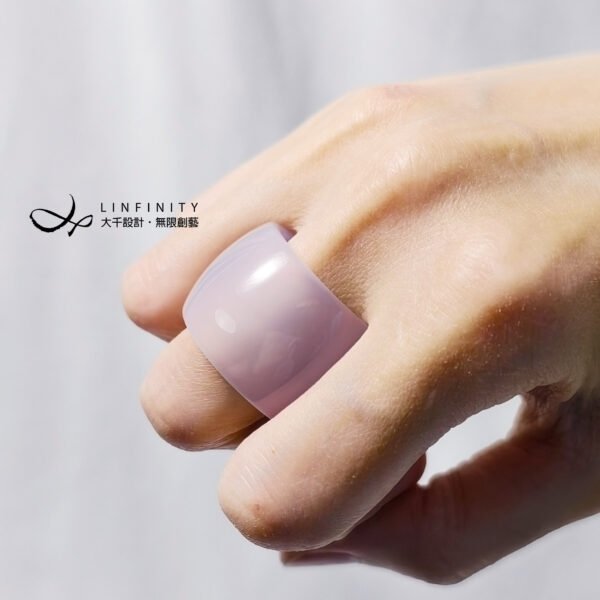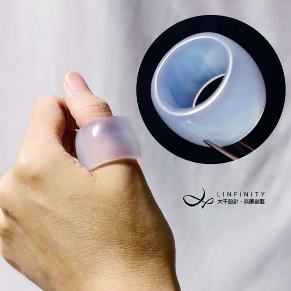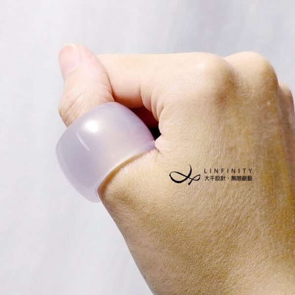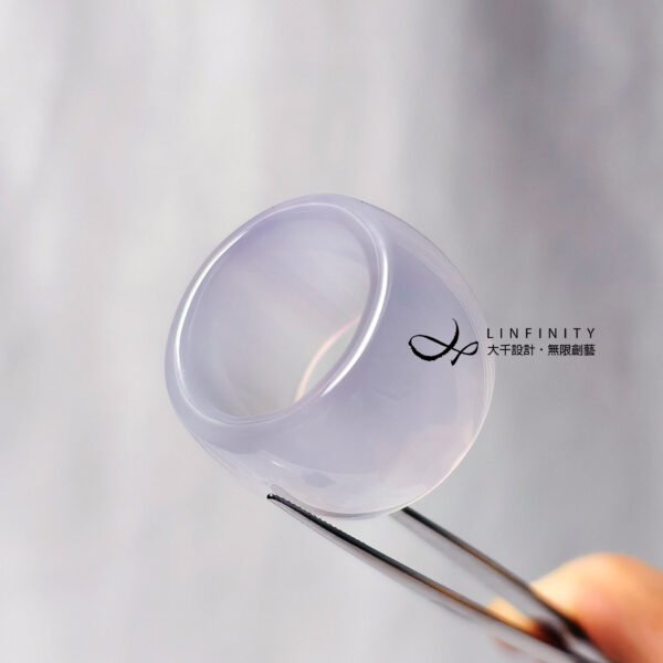 嚴選天然頂級冰種白玉瓍(瑪瑙),精工磨製2只扳指(戒指),寶石水光帶紫、起瑩泛光、細膩溫潤,無瑕、無裂、無礦缺、無斑點,不同光線角度下呈現自然冰白、冰紫色彩氤氳分佈,品相頂級,