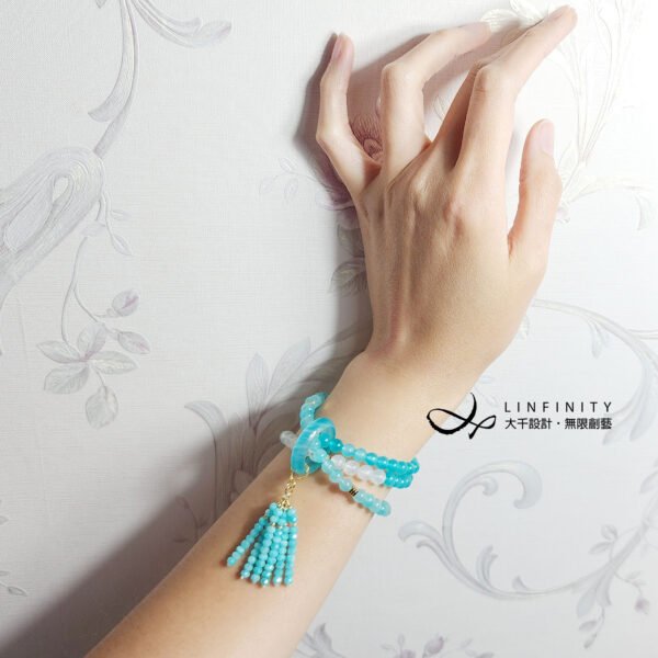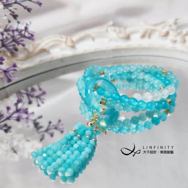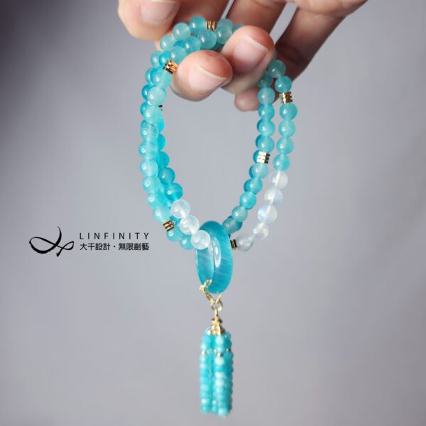 嚴選冰種天河石(幸運之石)、相佐藍月光石(靈性第三隻眼)設計。