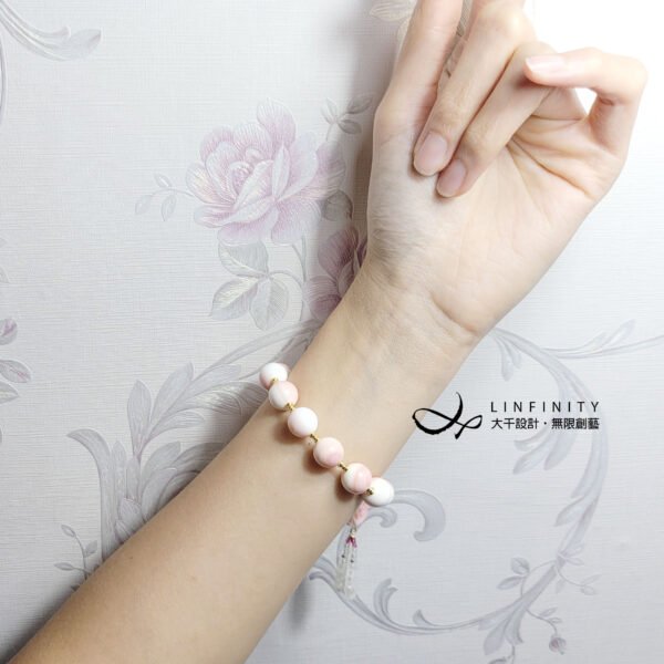 又名粉硨磲(Tridacna Stone)、胭脂貝,生長自深海,為經歷千百年蘊育生長的有機寶石,蘊藏能量強大之磁場,可使配戴者增進身心的調和平衡、啟發自我的智慧。