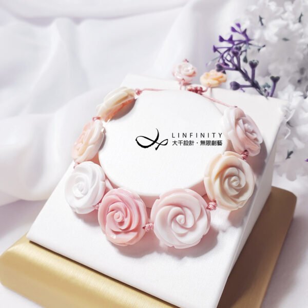 嚴選靈性有機寶石女皇貝,瓷化程度高,巧雕華美富麗玫瑰,水光潔淨、色澤豐潤,古典風情與現代時尚兼備,優雅氣質立現。