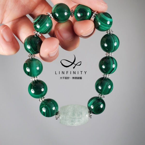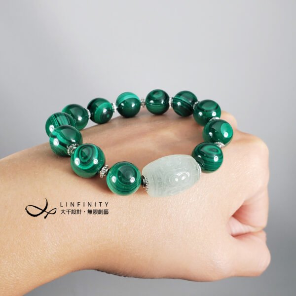 嚴選色彩正而濃艷、色帶文理獨具之頂級孔雀石,上手冰涼滑順、相當有份量。