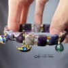 鍊身襯以碧璽,特精選碧璽家族中最為稀有之金碧(壽桃-健康)、紫碧(如意-順心)、鉻碧(蓮蓬-智慧),寶石件件火彩強、水光勻淨、色彩清亮,品相極佳。