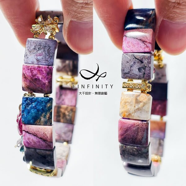 設計師嚴選藍、紫色舒俱來,磨製片狀,片片色彩美艷、紋理豐富,每一片都是獨特風景,風景萬千、百看不膩,值得收藏。