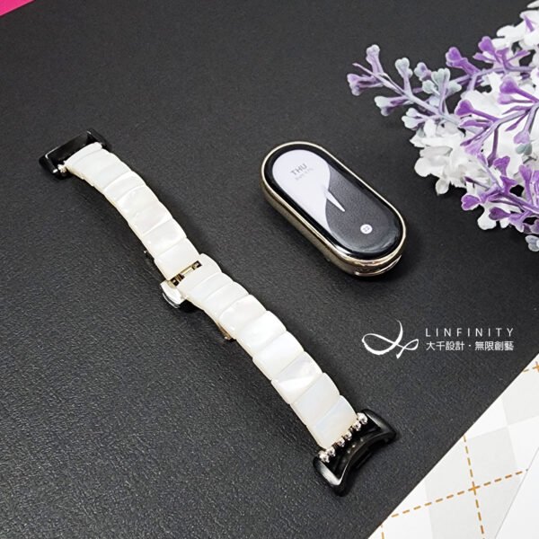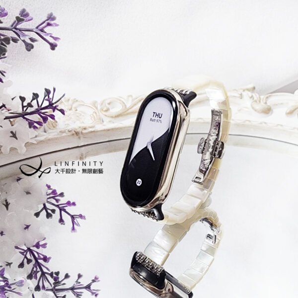 本件寶石版寬9.5mm,型制秀美,適合窄版智慧手錶,如小米(8代)、或Apple Watch(Series 8)。