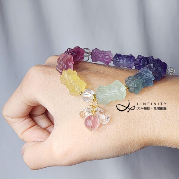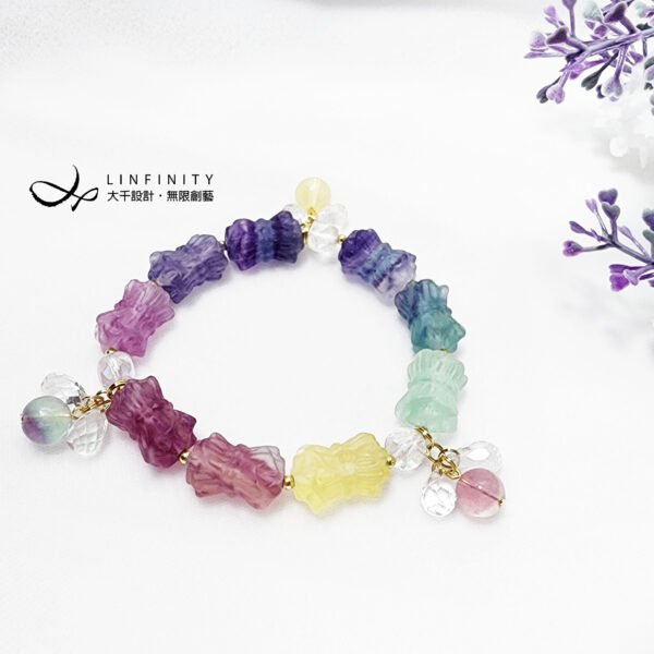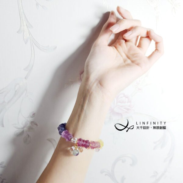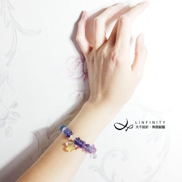 材質:天然頂級彩虹螢石、白水晶、18K、925銀