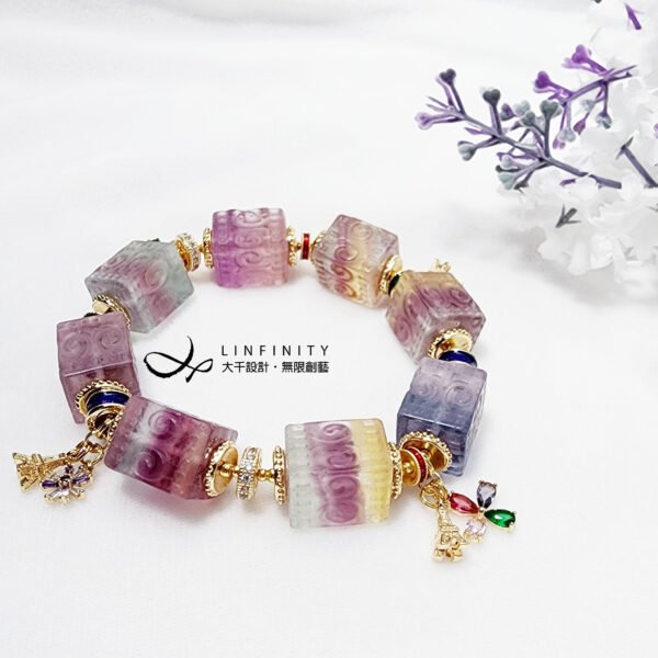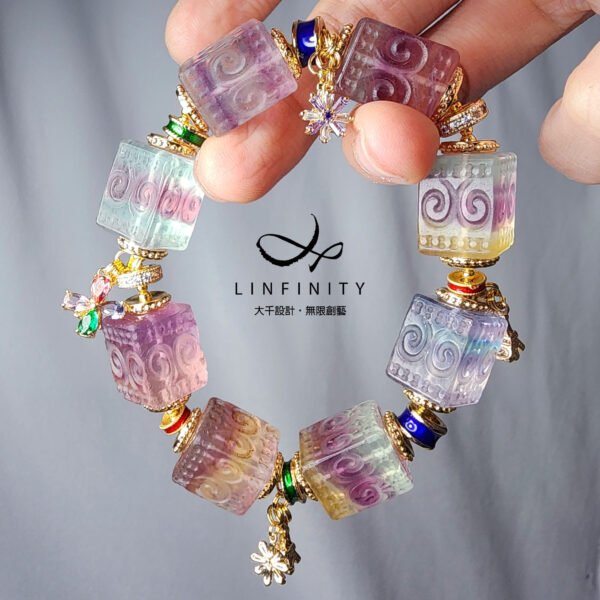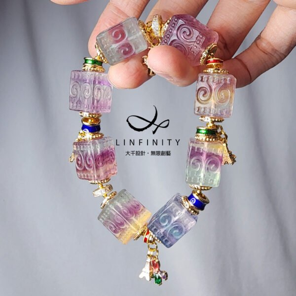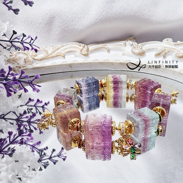 嚴選頂級彩虹螢石,精工雕製吉祥回紋魔方型,體現富貴吉祥、儀態萬方之美。