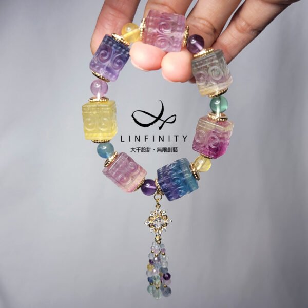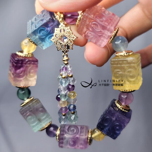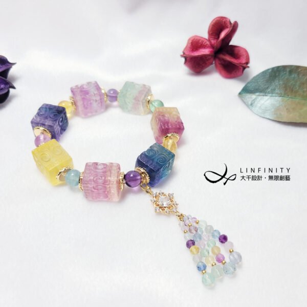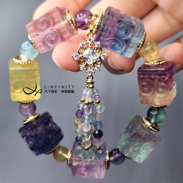嚴選頂級彩虹螢石,精工雕製吉祥回紋魔方型,體現富貴吉祥、儀態萬方之美。