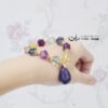 1.圖上彩虹螢石約11mm,紫龍晶水滴長約25mm、寬約17mm,厚約10.5mm,整體手圍約14.5cm。