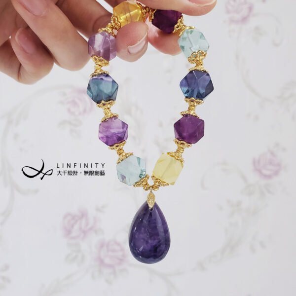 嚴選頂級色度、透度兼備之彩虹螢石,相佐帝后級寶石紫龍晶,共譜霸氣、智慧、與美麗兼備的氣息。