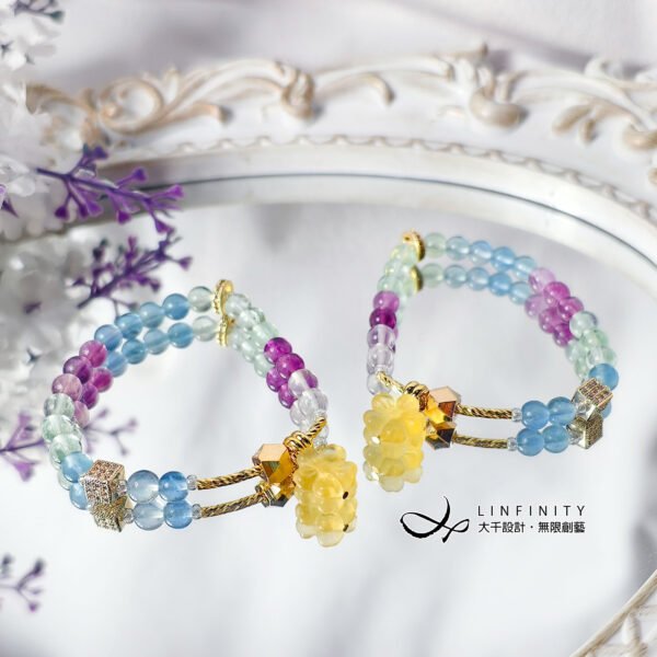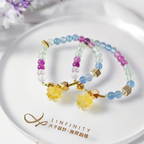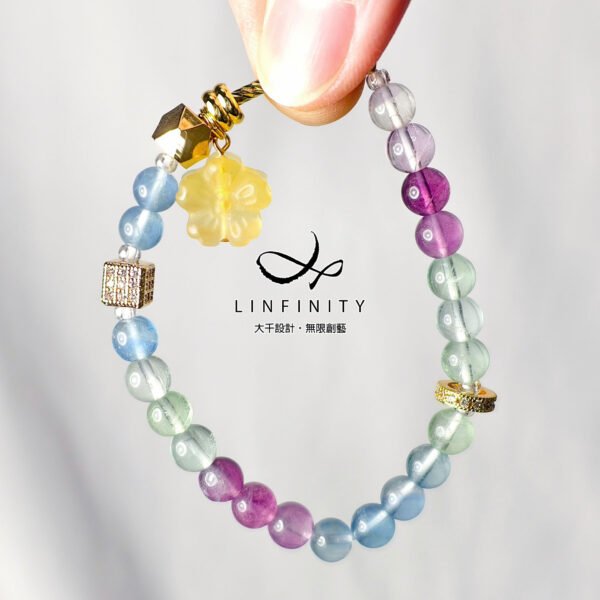 頂級彩虹螢石 花 七脈輪 天圓地方 智慧 招財 手鍊 限量客製 禮物