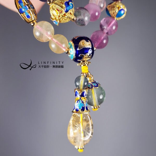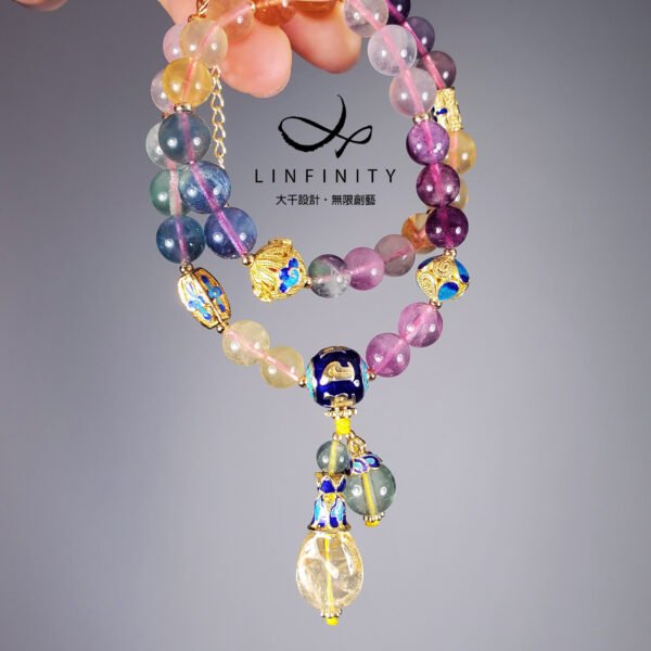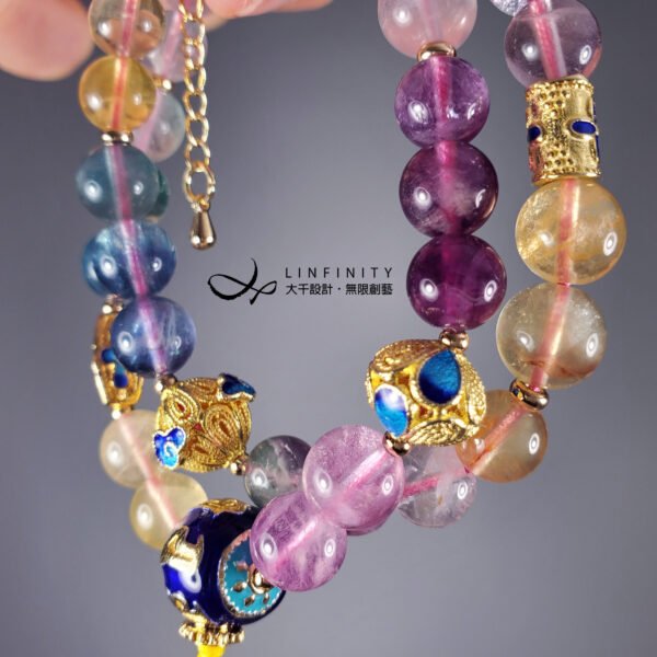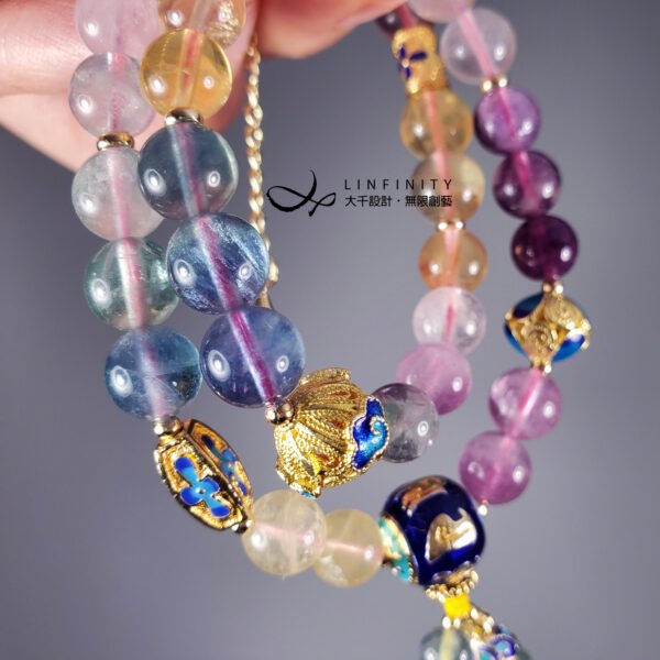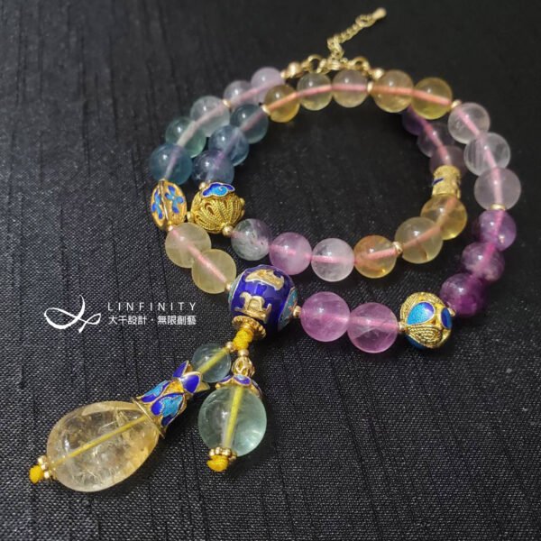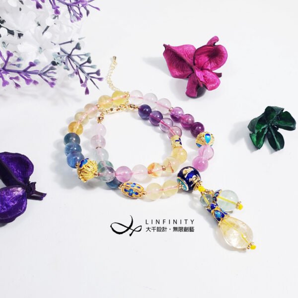材質:天然彩虹螢石、黃水晶、白水晶、琺瑯、925銀、18K金