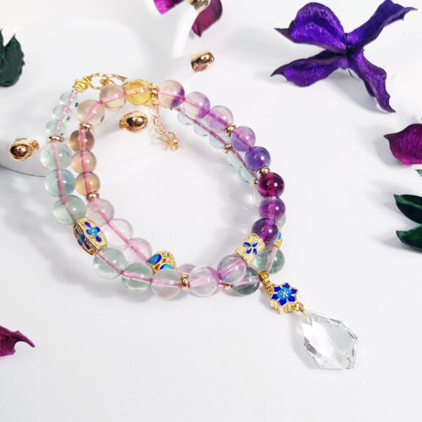 在天然寶石的領域,螢石屬於顏色最豐富的石頭,因為含有鐵、鎂、銅等離子,綠、紫、黃、藍、棕、橙、粉……螢石幾乎可以呈現任何顏色,宛如彩虹般美麗,故亦有「彩虹寶石」之美稱。