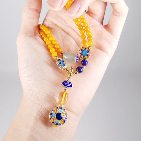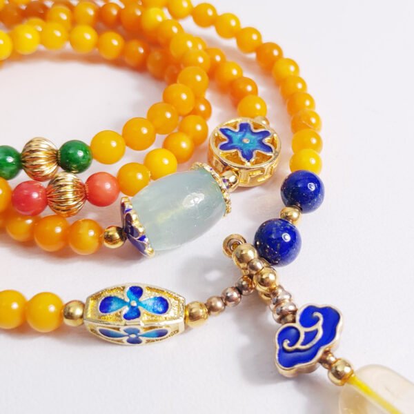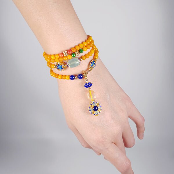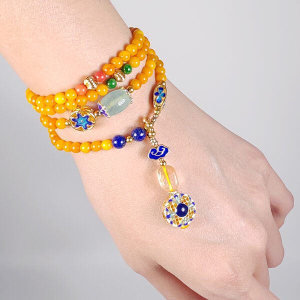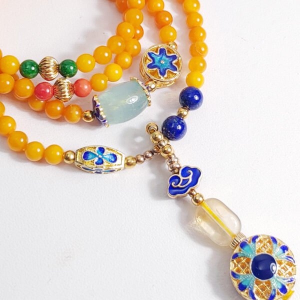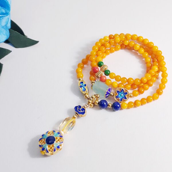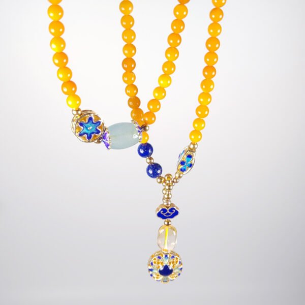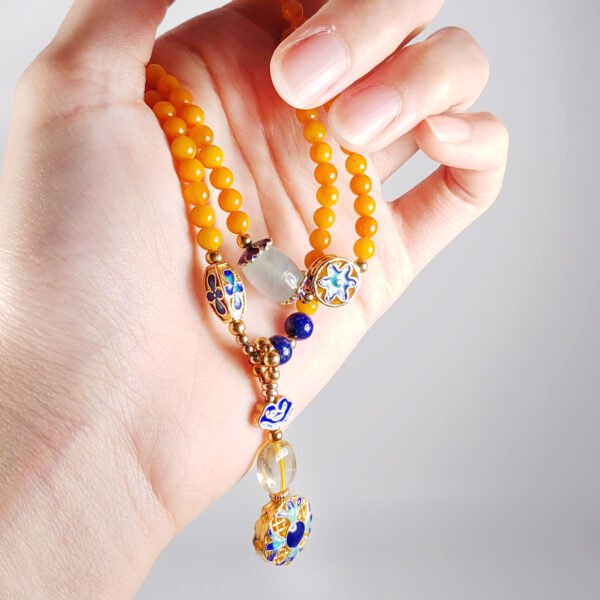 精挑細選採用天然琥珀、景泰藍(琺瑯)、多種寶石,精工編製成108手串。
