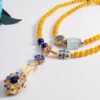 材質:天然琥珀、海藍寶、台灣珊瑚、翡翠、青金石、黃水晶、景泰藍(琺瑯)、18K金