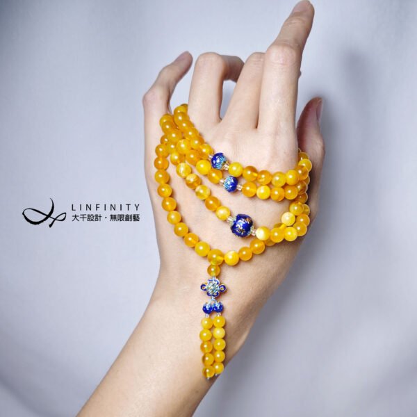 108手串確實源自佛家經典,也因其長度,得繞手腕好幾圈、或戴脖子當項鍊。但時至今日,108的材質、造型、裝飾用途等隨時代進步、改變,更為時尚、多層次、百搭,設計師也必須配合使用者喜好做調整,編製獨一無二的客製作品。