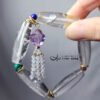 五行寶石分別為紅寶石(寶石之王)、金太陽石(自信、陽光、正能量)、黃水晶(招財納富)、綠松石(富貴雋永)、青金石(正氣凜然)、紫水晶(智慧、幸運)、藍月光石(靈性第三隻眼),寶石品相皆屬上乘,色彩勻淨、閃現彩虹光,整體華美別緻、大器非凡、寓意極佳。