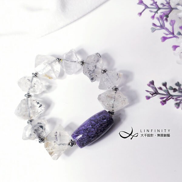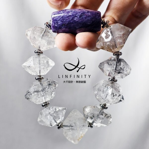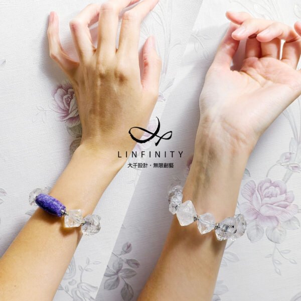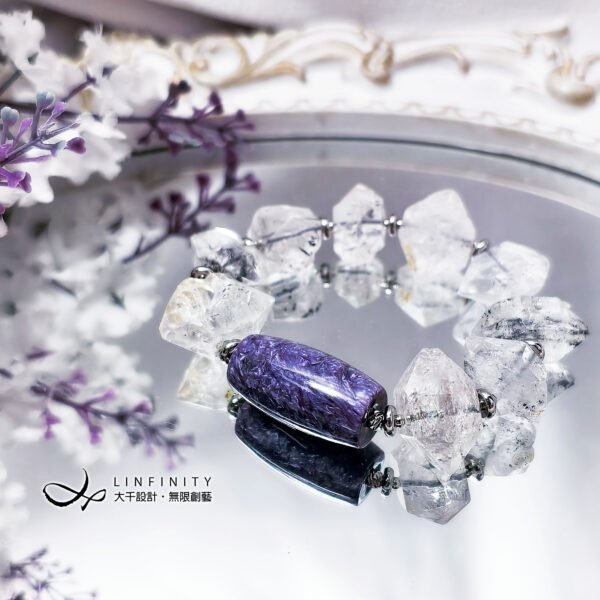 材質:天然閃靈鑽(赫基蒙鑽石水晶)、紫龍晶、18K金、925銀
