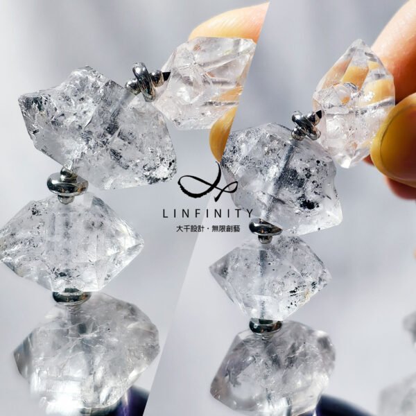 閃靈鑽以天然晶體造型為美,銳角皆經適當打磨,初戴前幾個月仍能感受礦體原始、略粗糙之觸感,故不宜貼合手腕配戴,建議略戴寬鬆為宜,經長時間配戴後,晶體銳角會更為圓潤舒適,請買家自行斟酌配戴習慣^^