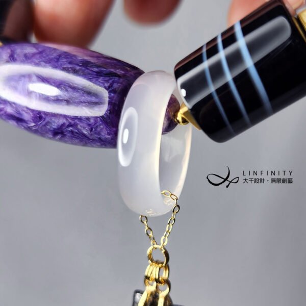 材質:天然紫龍晶、玉瓍(瑪瑙)、黑髮晶、18K金、925銀