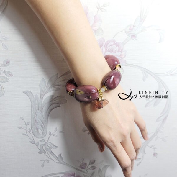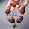 點綴以紅粉色碧璽,並主飾碧璽竹節(節節高升、高風亮節)、貝(招財致富),整體紅中帶紫色調祥瑞富貴,大寶石鍊身霸氣非凡。
