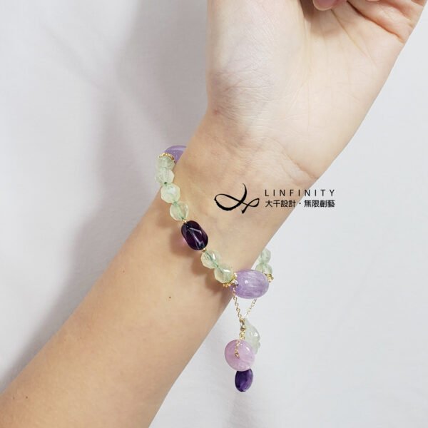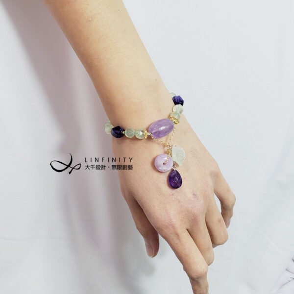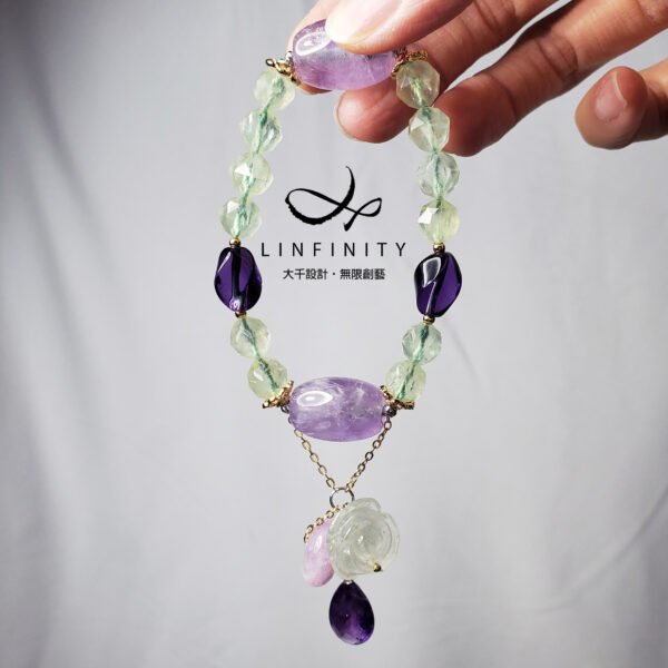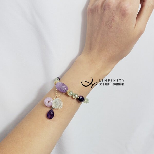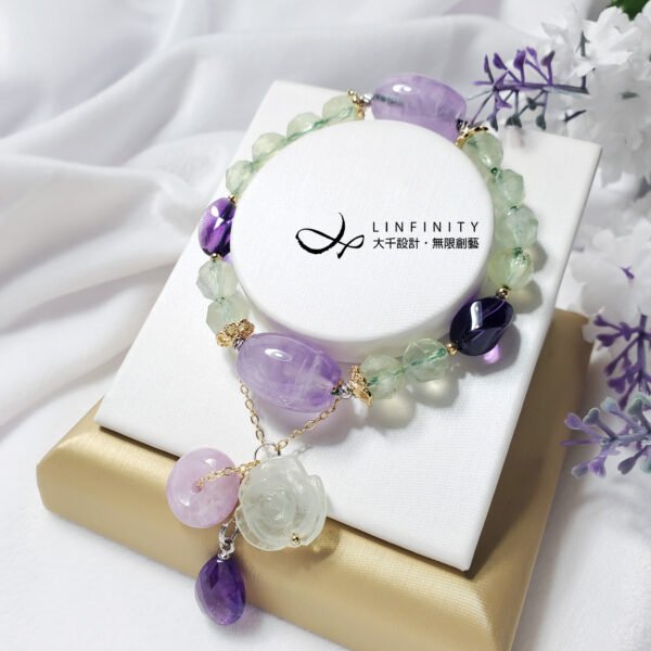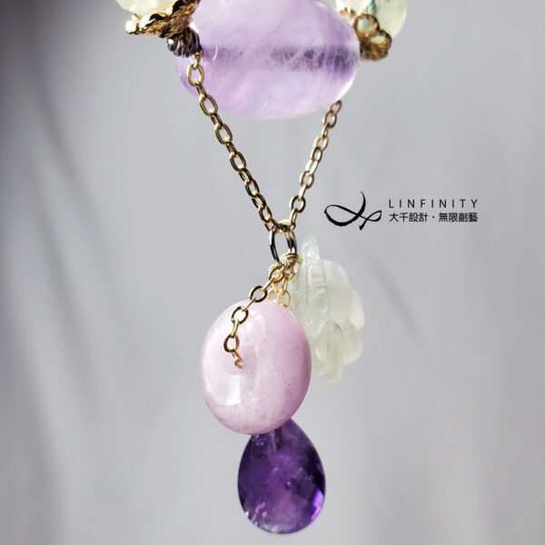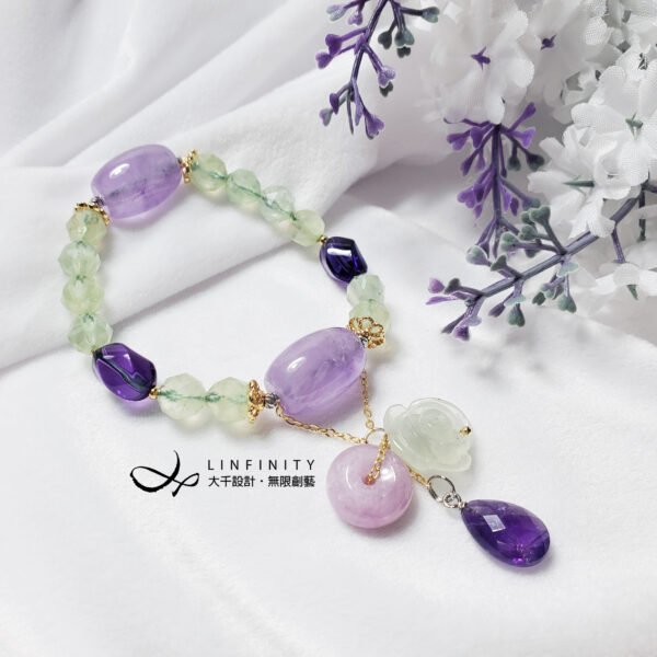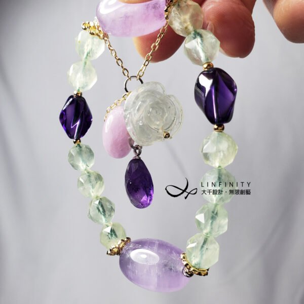 材質:天然葡萄石、紫水晶、紫鋰輝、925銀、18K金