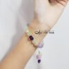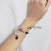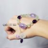 1.圖上葡萄石約8.5mm,薰衣草紫水晶長約19mm,主綴飾(含K金鍊+葡萄石玫瑰+紫鋰輝平安扣+紫水晶水滴墜)總長約4.2cm、寬約12mm,整體手圍約15.5cm。