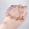 紫黃晶的紫色代表智慧,黃色代表財富,同時擁有紫黃雙色的水晶被認為能帶來過人的智慧與財富。